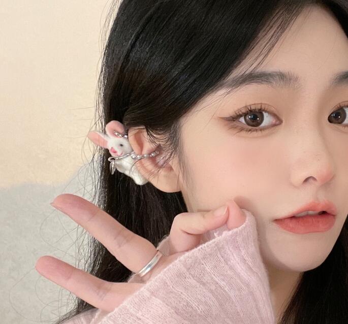 Cute Plush Bunny Rabbit Earrings Cuff Clips