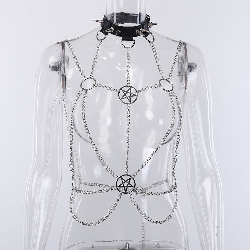 Gothic Star Body Harness Chain Choker Set