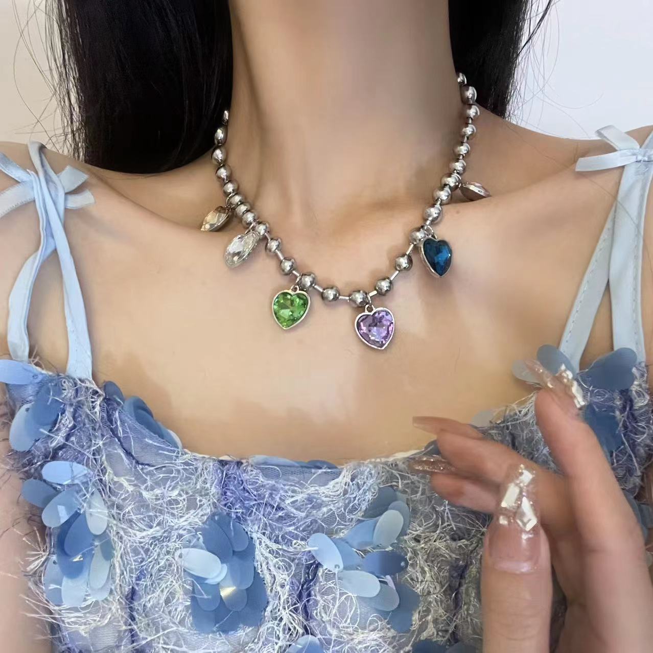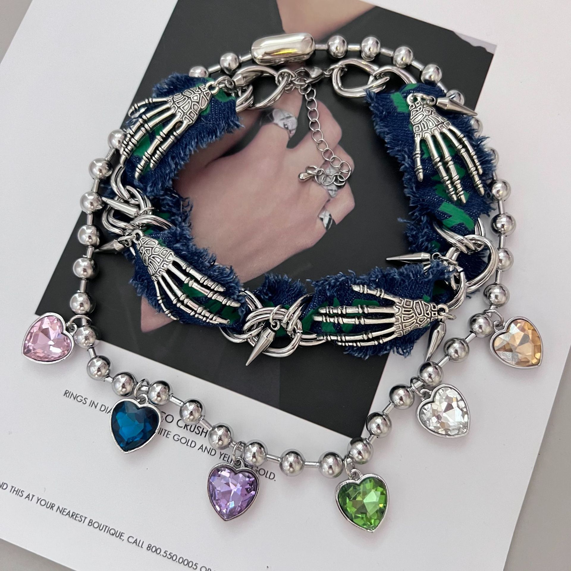Unveil your unique style with our Charming Blue Ghost Claw Chain and Love Heart Choker Necklace Set. This captivating duo is designed to express your individuality and fashion-forward spirit. The blue ghost claw chain necklace adds an edgy and mysterious touch, while the love heart choker brings a hint of romance and sentiment. Wear them together or separately to create versatile looks that resonate with your personality. Elevate your accessory game with this one-of-a-kind necklace set, where charm meets creativity for a truly captivating statement.