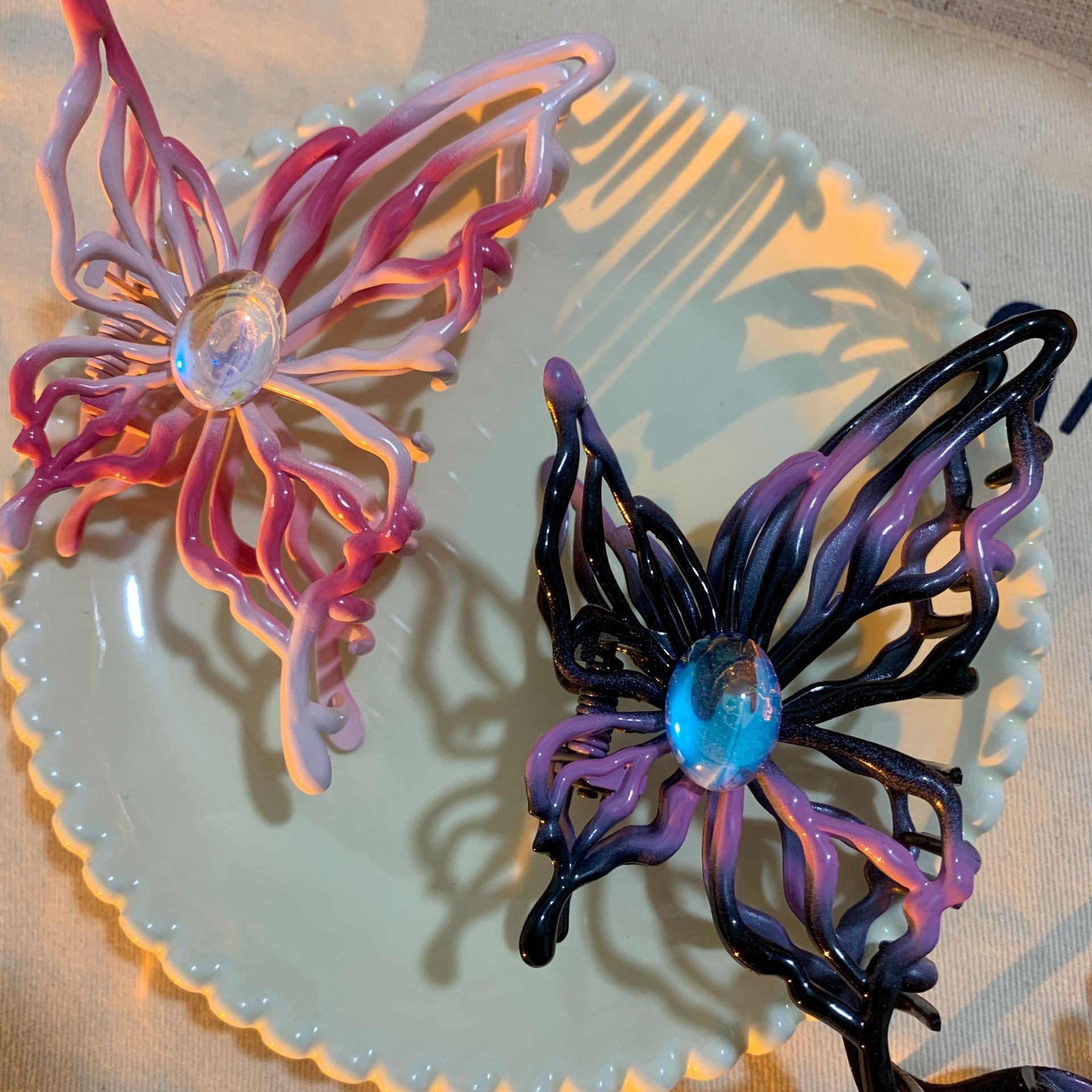 Elevate your hair game with our 2Pcs Hollow Metal Butterfly Hairpin Hair Clips. This charming set includes two exquisite hair clips in both pink and black, offering a versatile range of styling options. With one small and one large clip, you have the perfect accessories to adorn your locks elegantly. The hollow metal butterfly design adds a touch of whimsy and sophistication to any hairstyle. Whether you're going for a casual look or dressing up for a special occasion, these hairpins are the perfect finishing touch to complete your ensemble. Embrace the beauty and versatility of these hair clips and elevate your hair accessory collection.