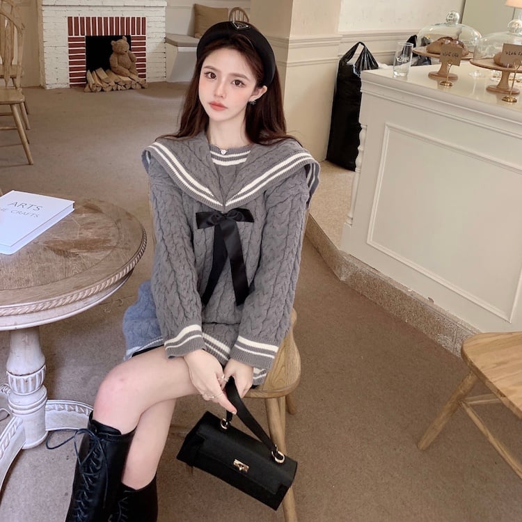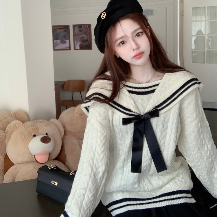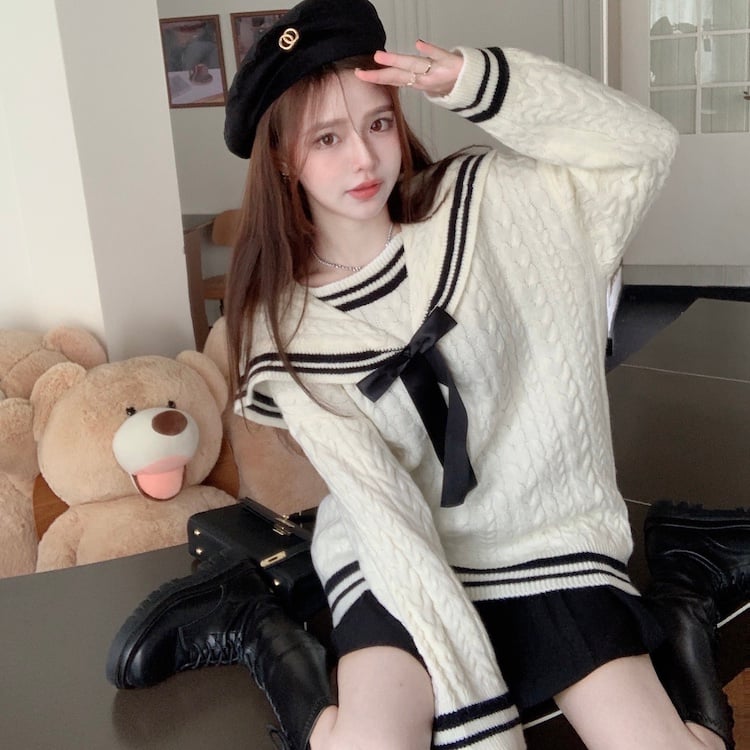 JK Navy Collar Stripes Knitted Jumper Sweater