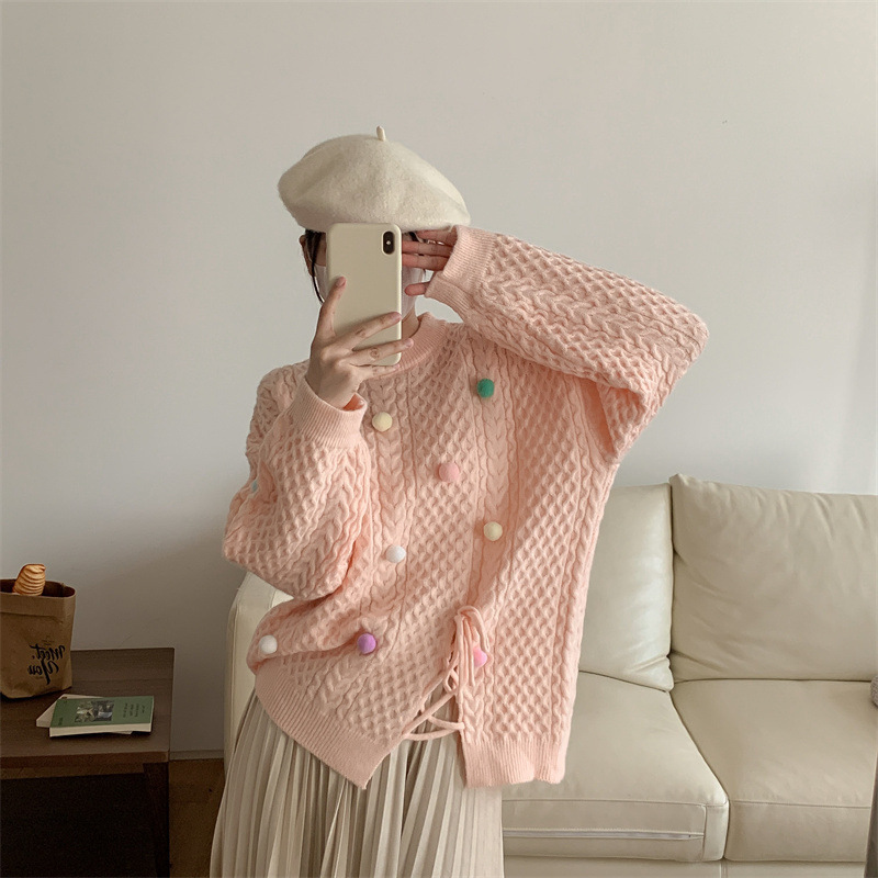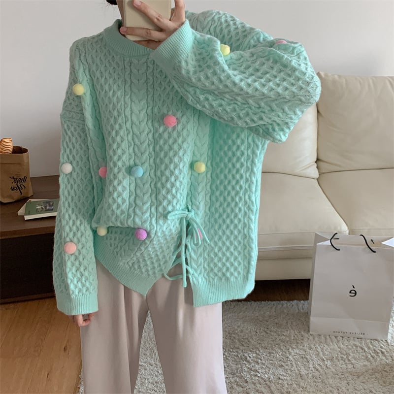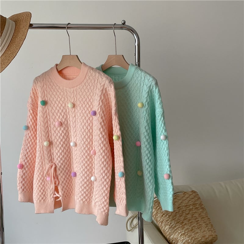Pastel Color Pom Pom Knitted Sweater