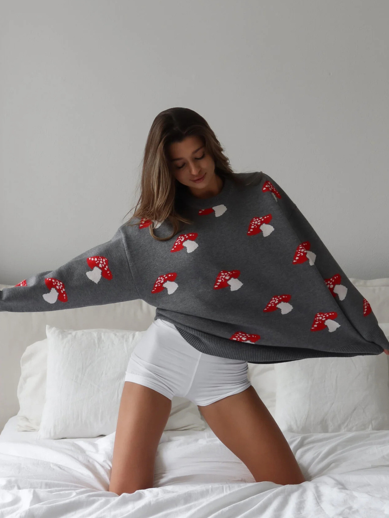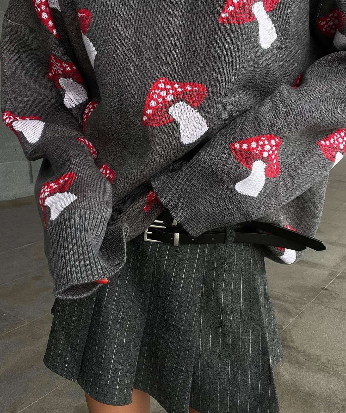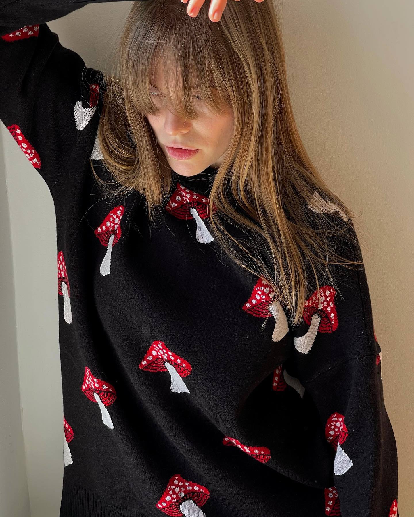 Elevate your wardrobe with our exquisite Mushroom Pattern Knitted Sweater. Crafted from the finest materials, this cozy piece features a charming mushroom motif that adds a touch of whimsy to your ensemble. The soft, luxurious fabric ensures both comfort and style, making it perfect for chilly days. Whether you're dressing up for a casual outing or relaxing at home, this sweater is a versatile addition to your closet.