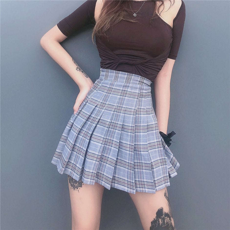 Blue/Pink A-line Plaid Skirt
