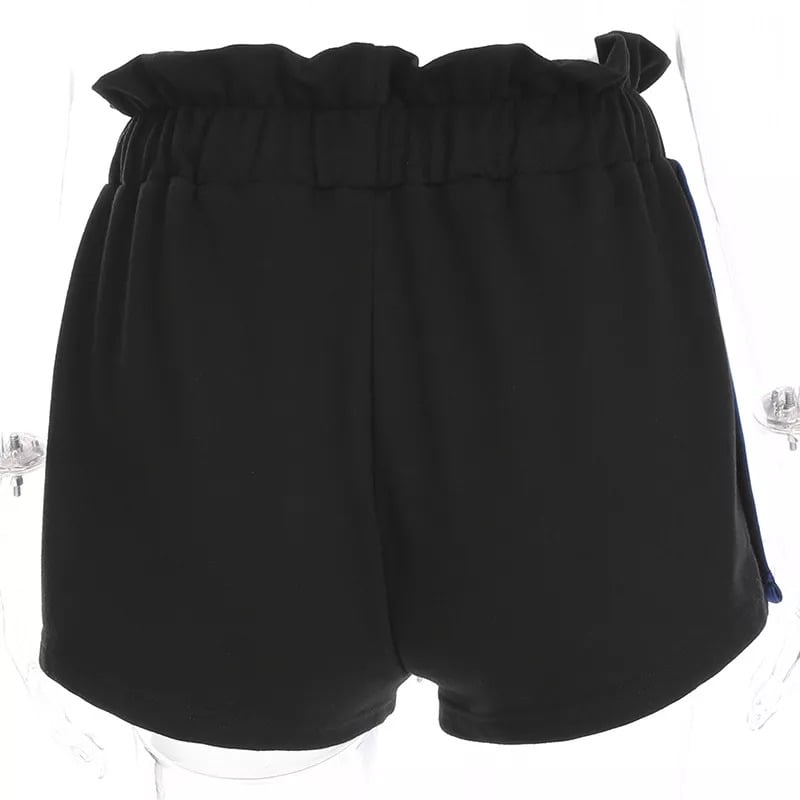 Black Patchwork Elastic Drawstring High Waist Shorts