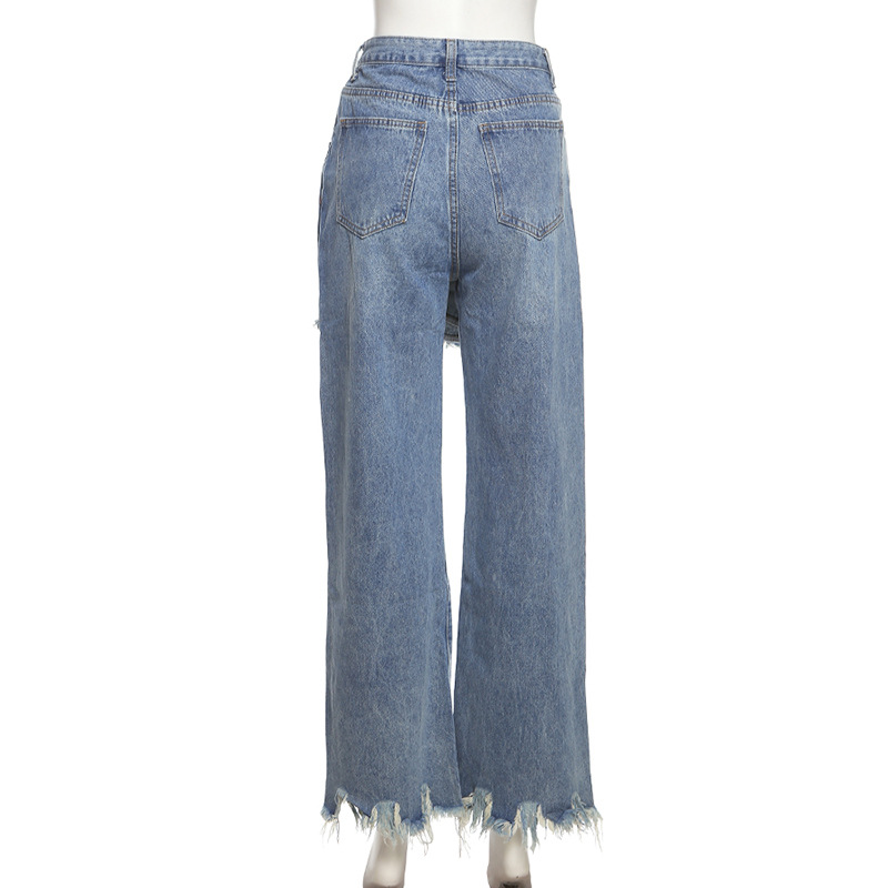 Fashion fringed denim straight pants jeans