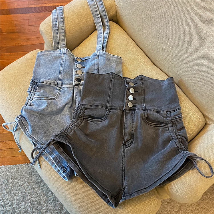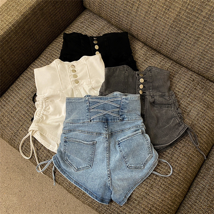 Drawstring high waist denim shorts