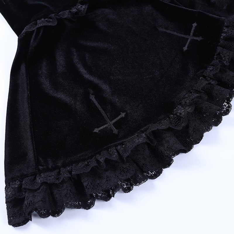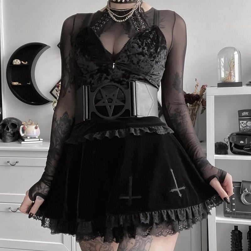 Gothic punk cross embroidered lace skirt