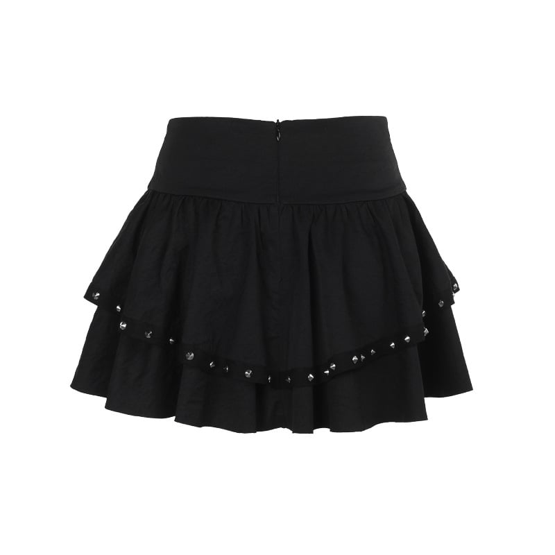 High Rise Side Lace Up Rings Studded Mini A-Line Skirt