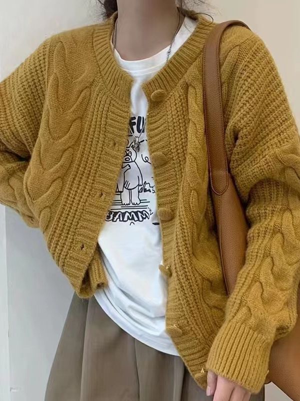 This loosely knit cable-knit sweater cardigan is the perfect addition to your fall and winter wardrobe. It's made from a soft and cozy blend of acrylic and wool, and it features a classic cable-knit pattern. The loose fit is flattering on all body types, and the cardigan can be dressed up or down.
