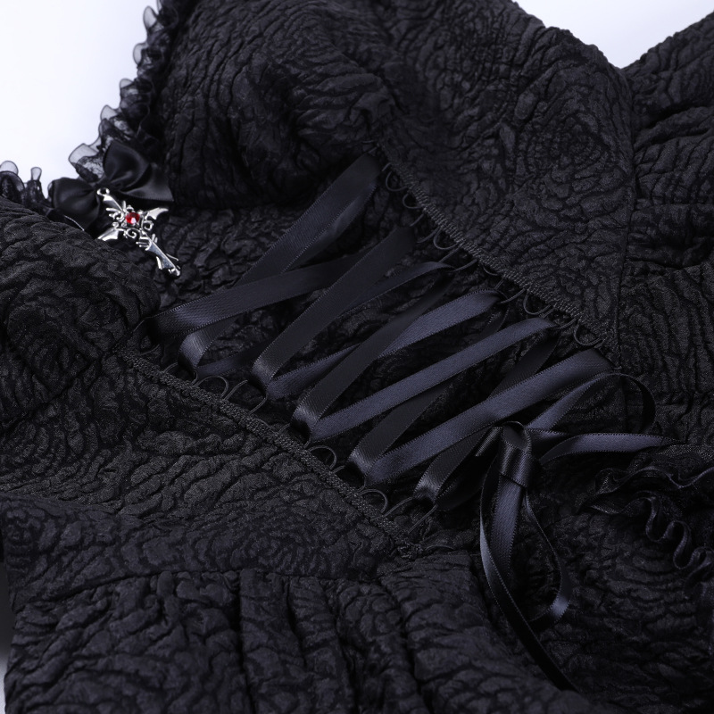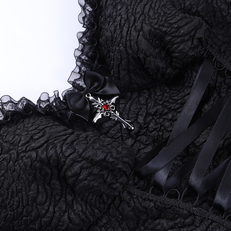Immerse yourself in the artistry of our double-layer polyester party dresses, meticulously crafted in the Gothic style. Each element, from the meticulous stitching to the elaborate lacework, showcases the unwavering commitment and expertise of our skilled artisans. The dress design encapsulates the very essence of the Gothic aesthetic, featuring cascading layers, intricate lace accents, and a captivating silhouette. It flawlessly harmonizes dark elegance with contemporary refinement, creating a truly alluring ensemble. Whether you grace a party or a noteworthy event, this dress guarantees to command the spotlight, radiating an air of grace and self-assurance.