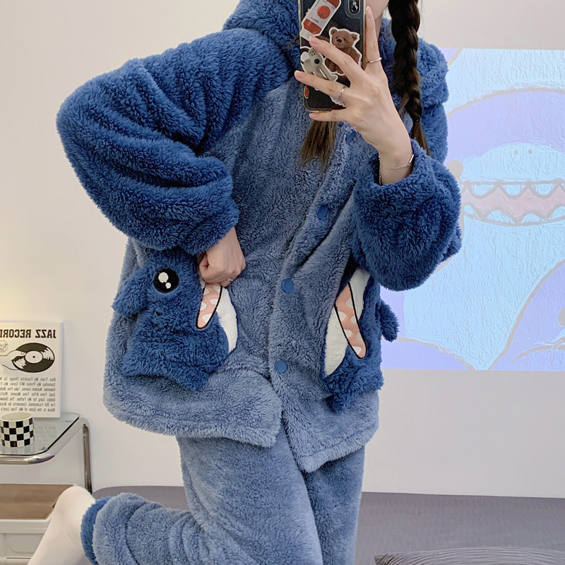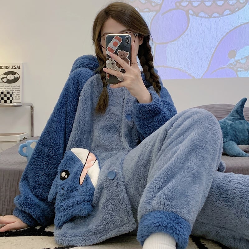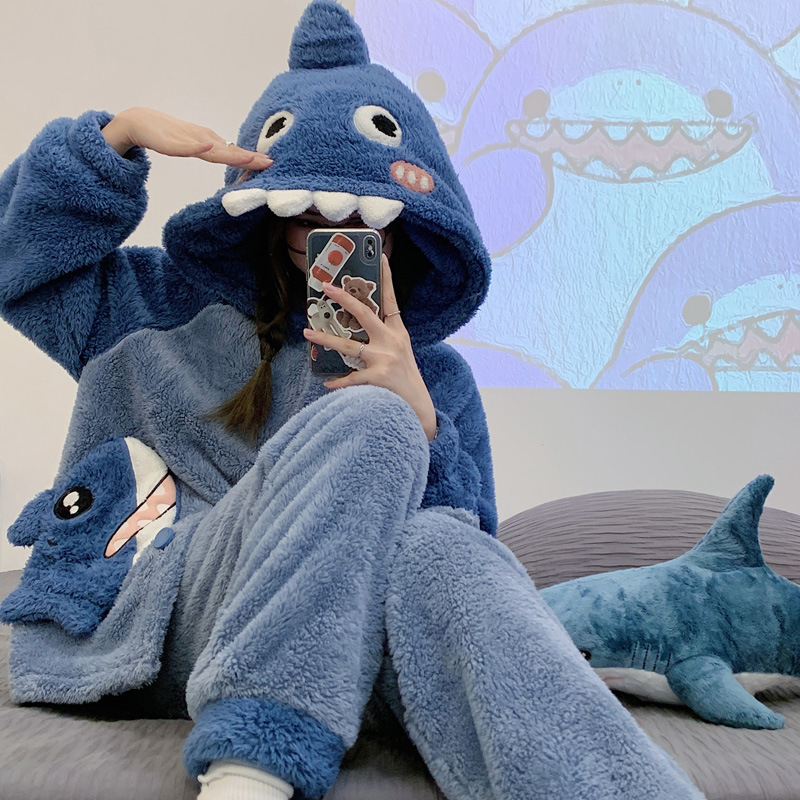 Introducing our Cozy Shark Fleece Pajama Set – the perfect blend of comfort and whimsy for your nighttime adventures! This delightful set includes a hoodie top and fleece pants, ensuring you stay warm and snug throughout the night.