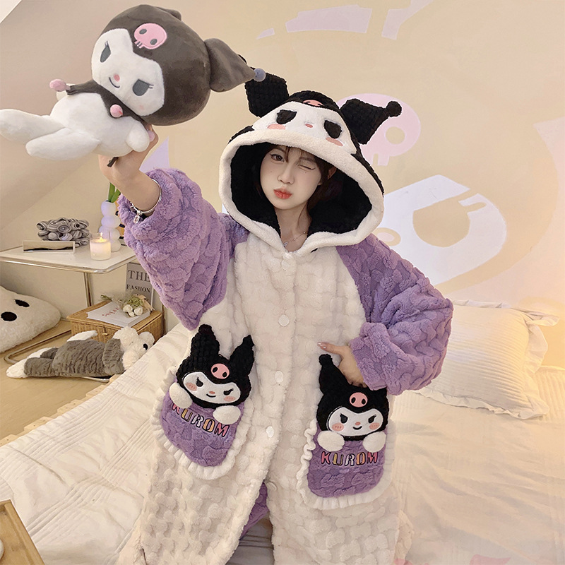 Discover the magic of bedtime with our Cute Purple Anime Cartoon (Kurumi) Fleece Bathrobe Pajamas Flannel Nightwear Set ā where style, warmth, and childhood dreams come together! šš
