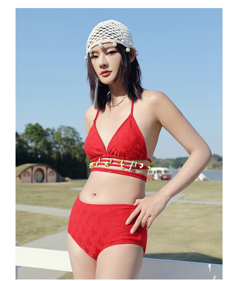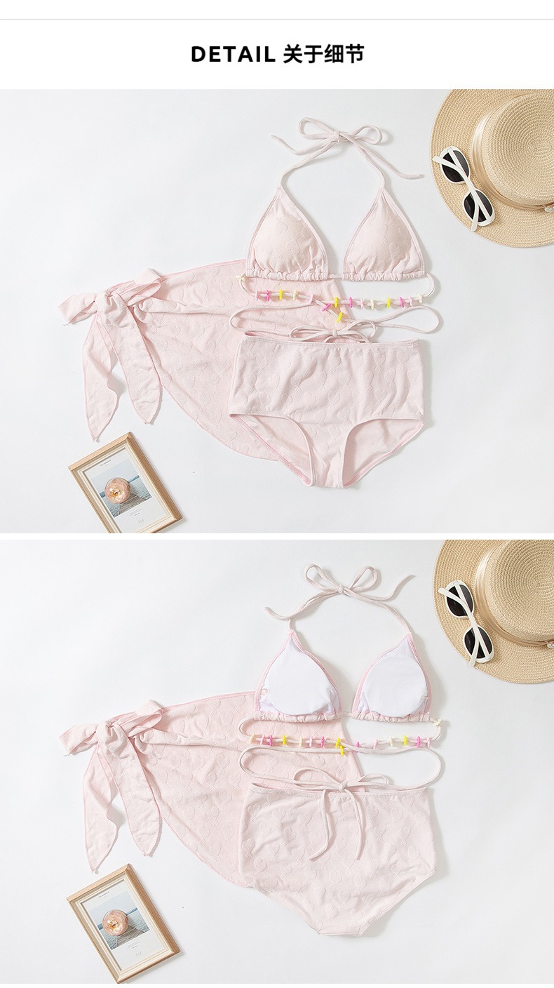 Make a splash this summer with our alluring 3-piece bikini set! This stunning ensemble features a strappy top designed to enhance your décolletage, paired with flattering high-cut bottoms for an elongated look. The set is completed with a stylish cover-up skirt, perfect for transitioning from beach to bar. Crafted from high-quality, quick-drying fabric, this bikini offers both comfort and confidence. Embrace your inner siren and turn heads with this unforgettable swimwear.