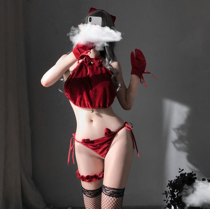 Material: Velvet Package Includes: Hair band + Neck ring + Top + T-pants + Gloves * 2 + Leg ring (Without stocking) One Size: Weight 40-60 kg