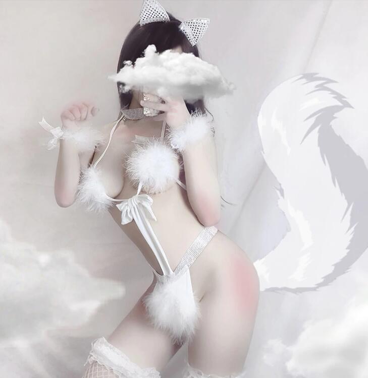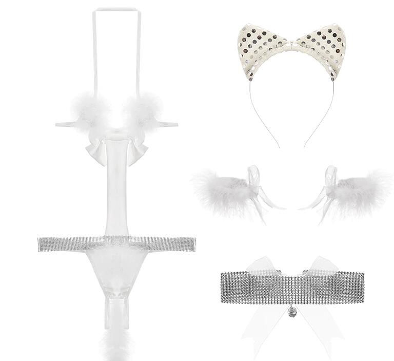Material: Polyester Package Includes: Kitty Headband + Collar with bell+ Bra and panties set One Size: Weight 40-60 kg