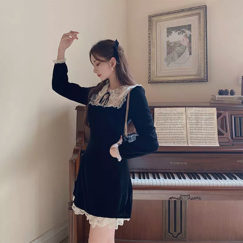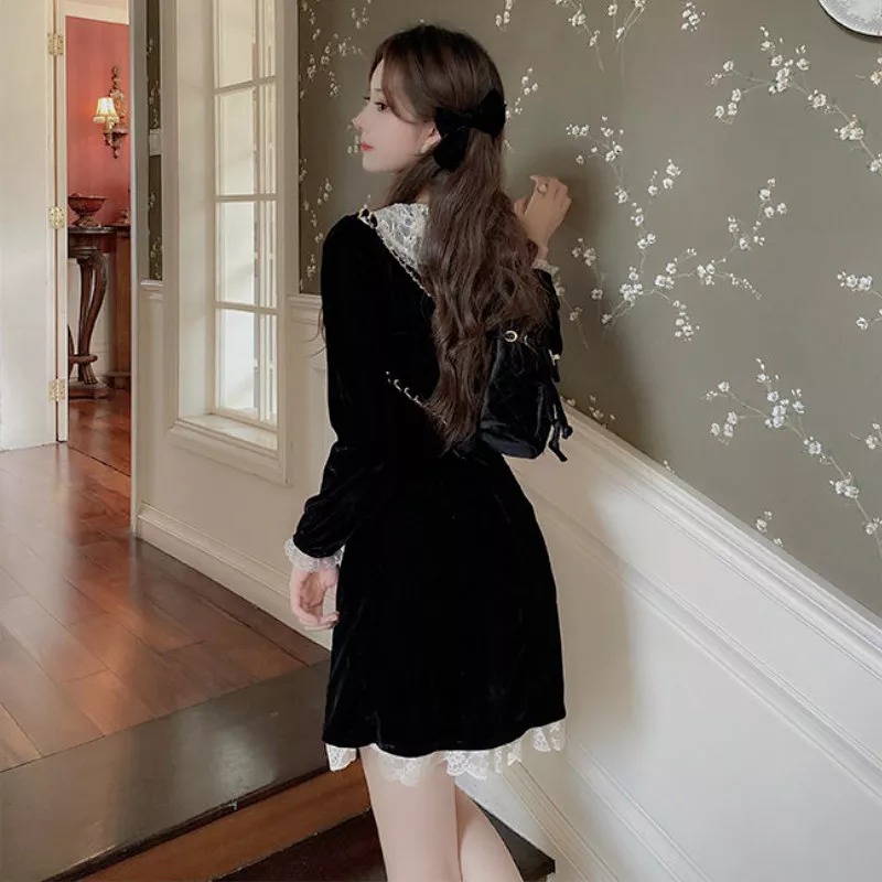 Elegant Bow Lace Patchwork Sweet Mini Dress