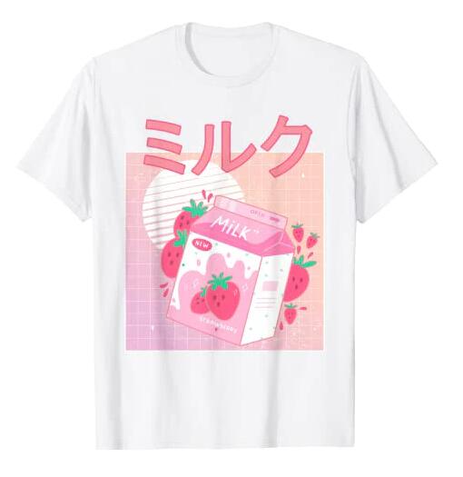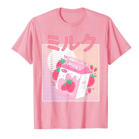 90s Japan Cute Strawberry Milk Shake Carton T-shirt
