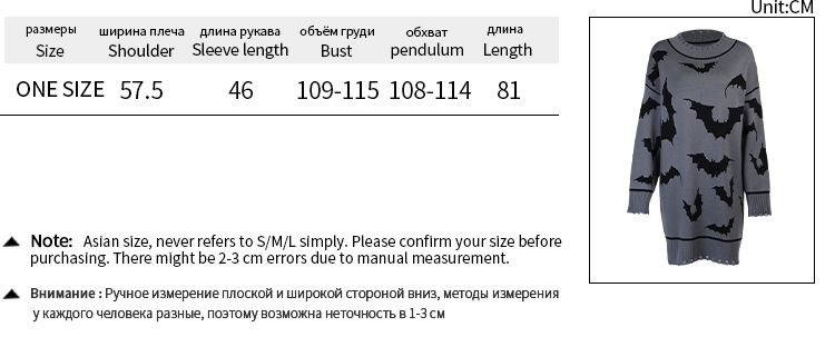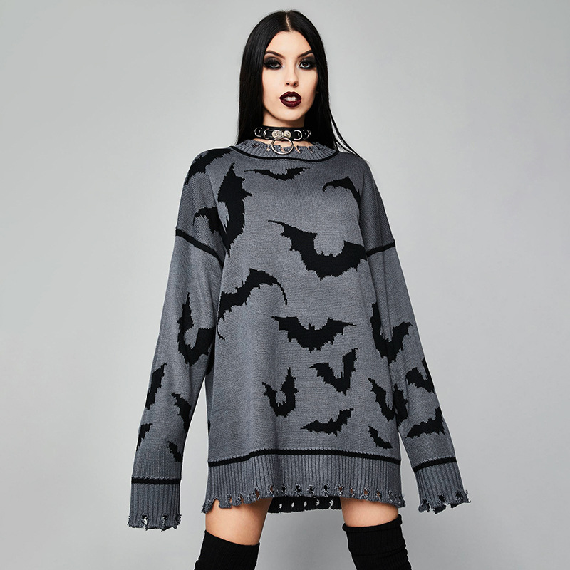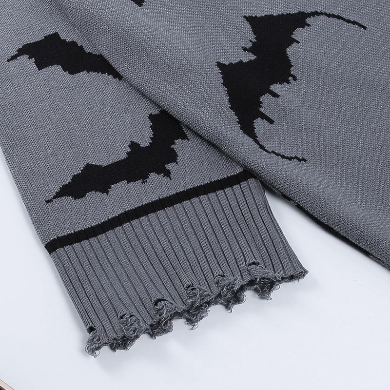 Gothic Punk Bats Pattern Knitted Sweater Jumper