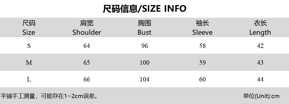 Material: Polyester Size: M: Length 68cm; Bust 110cm; Shoulder Width 55cm; Sleeve Length 56cm;