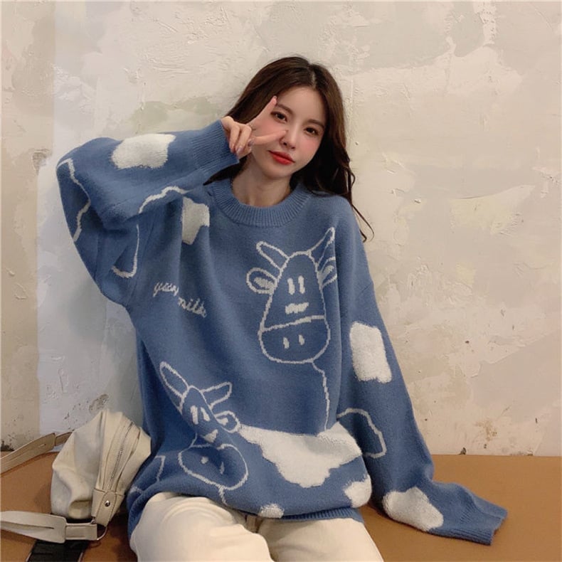 Cute Cow Cloud Knitted Sweater