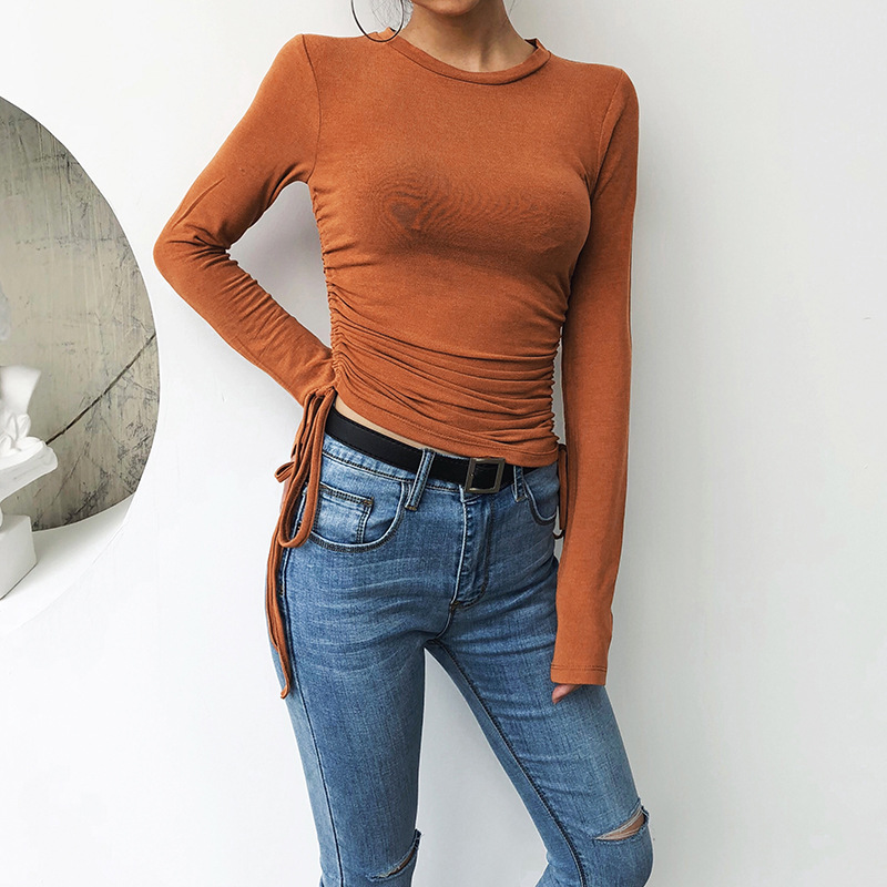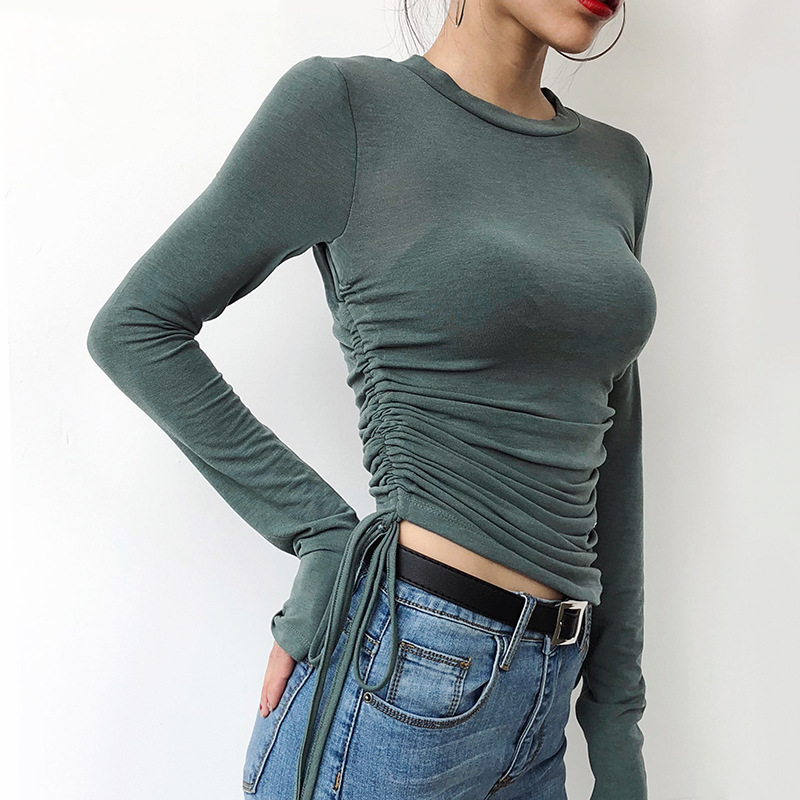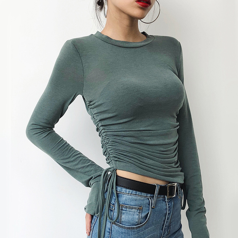 Side Drawstring Long Sleeve Slim Top
