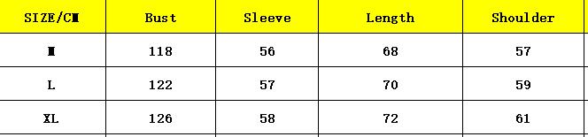 Material: cotton blend; Size: Length 51cm; Bust 70cm; Shoulder Width 27cm; Sleeve Length 58cm;