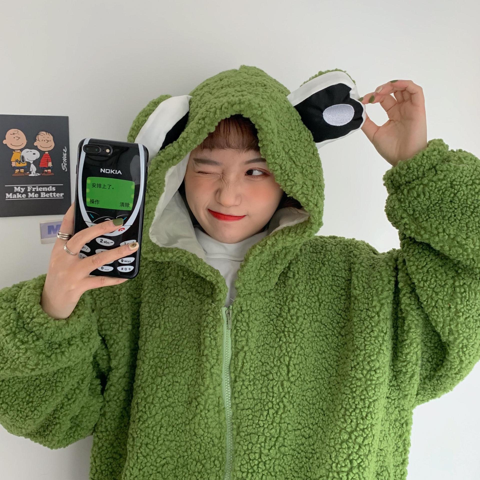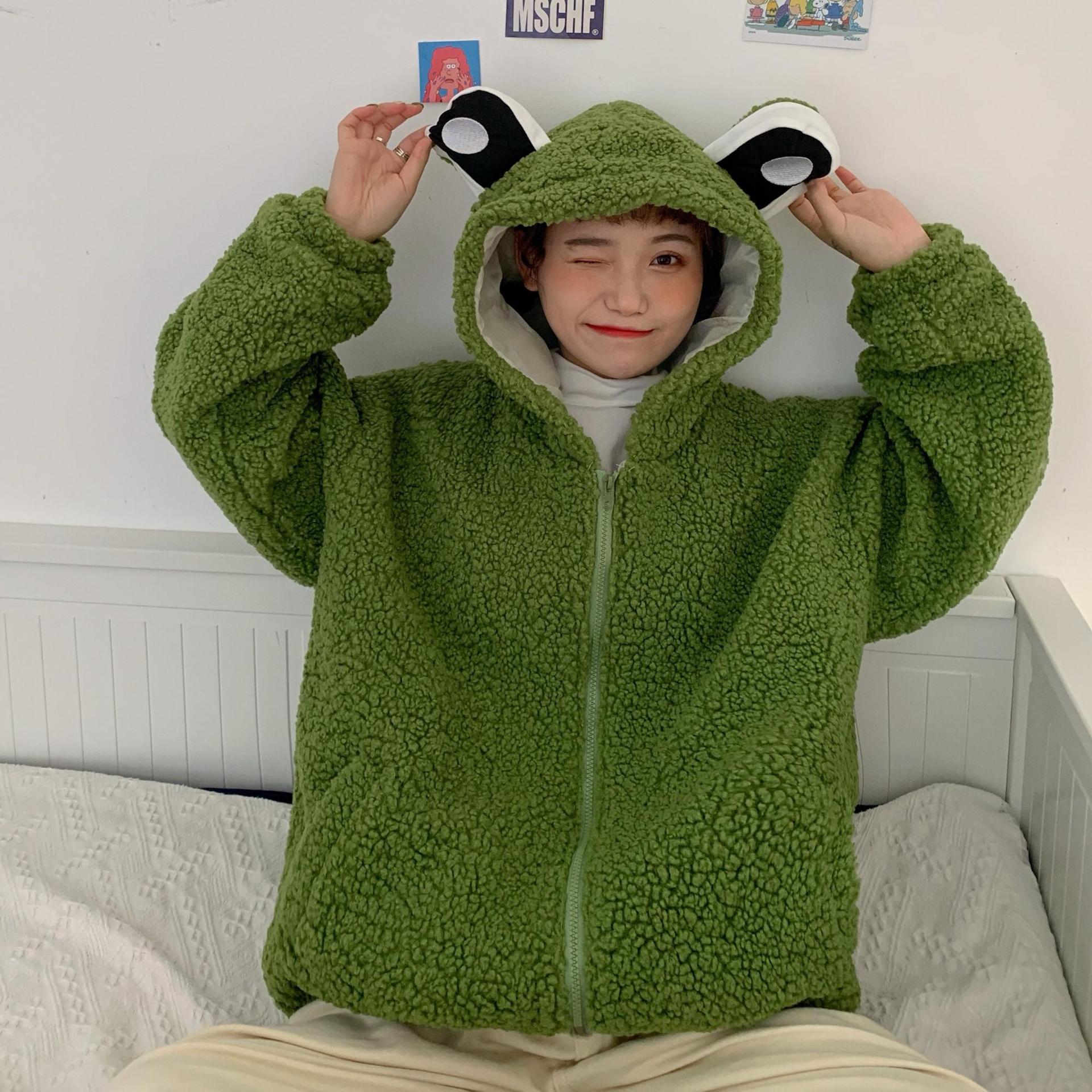 Kawaii Cute Fleece Frog Hoodie Jacket