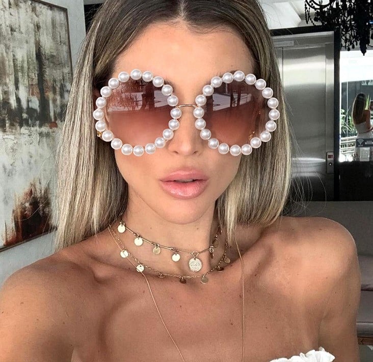Big frame Pearl round sunglasses