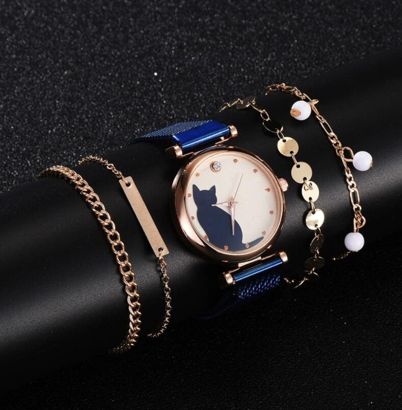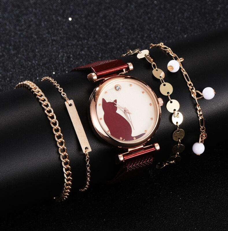 5 PCS Set Magnet Cat Pattern Watch Bracelet