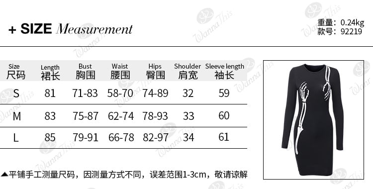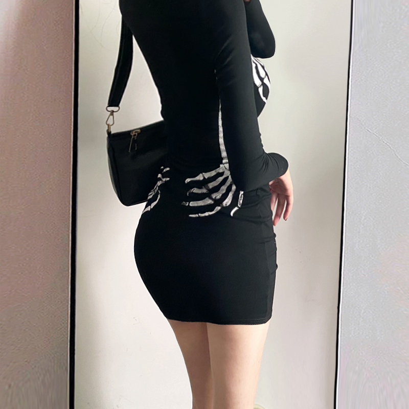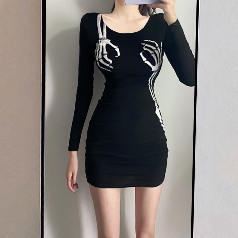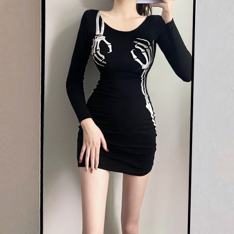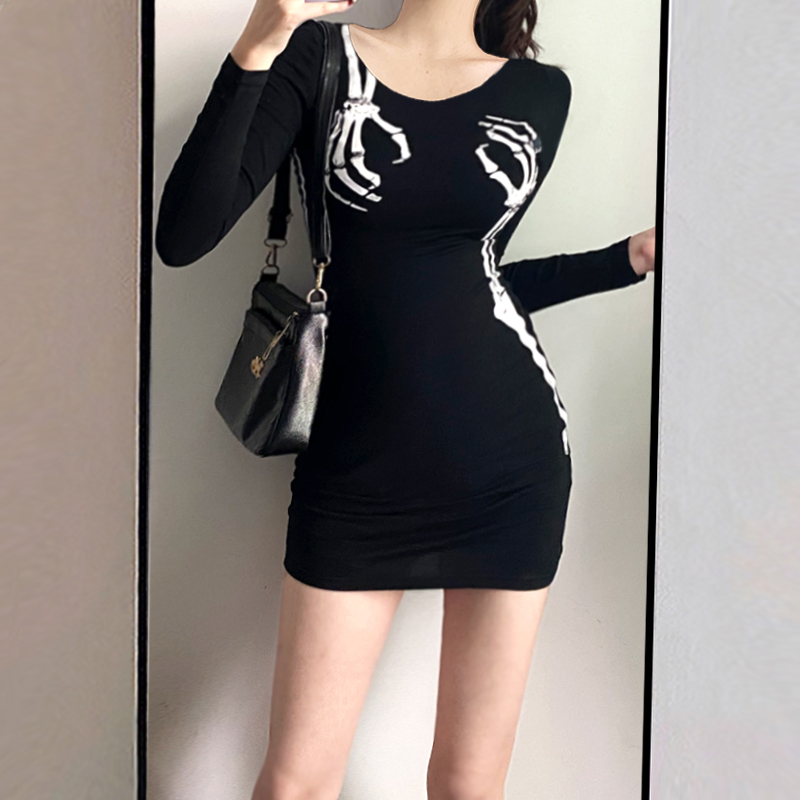 Sexy Black Punk Skeleton Long Sleeve Dress