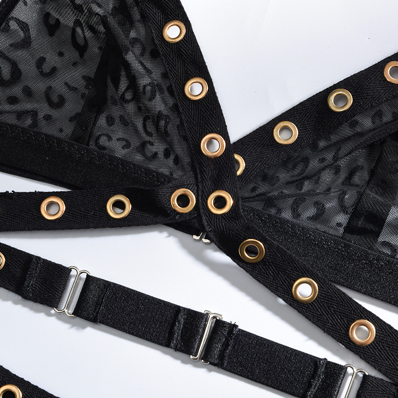 Sexy leopard mesh breast button sexy V-neck perspective body sculpting split suit