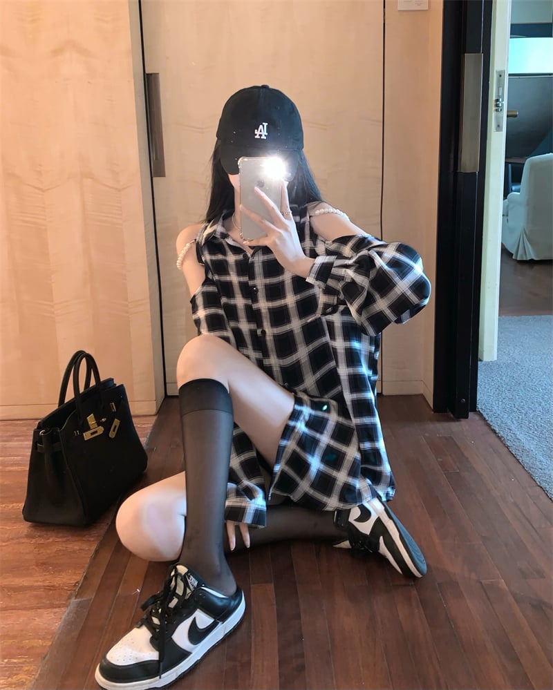 Summer Off-the-shoulder Plaid Shirt