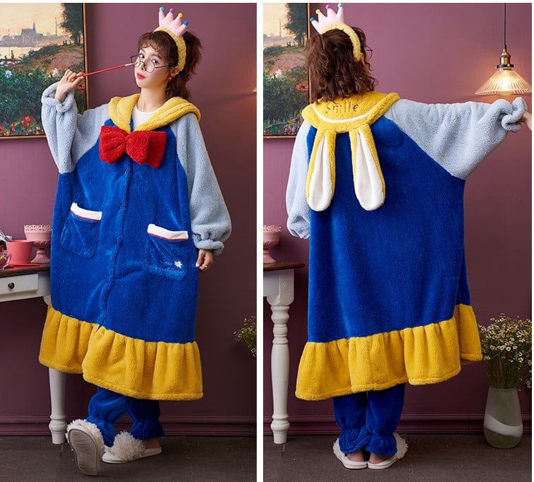 Fairy Bunddy Ears Fleece Bathrobe Pajamas Flannel Nightwear Set