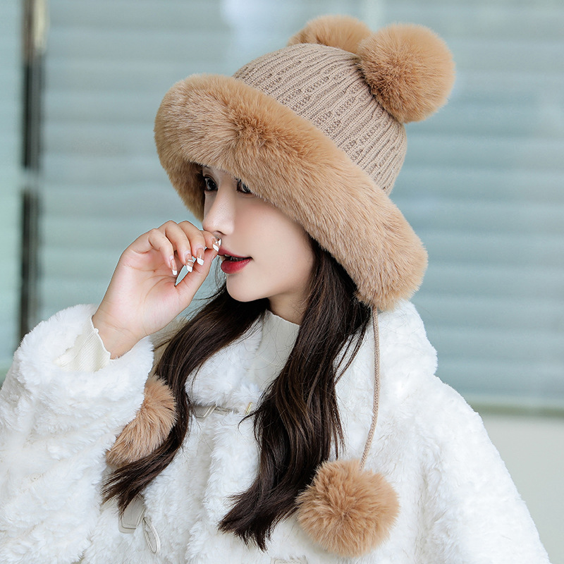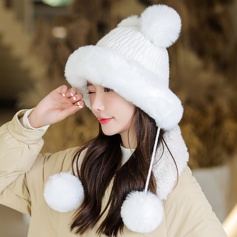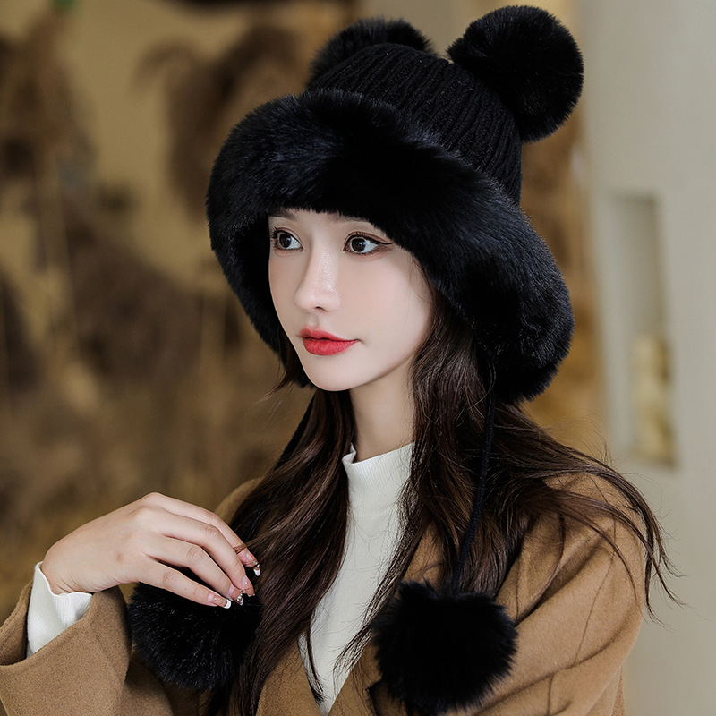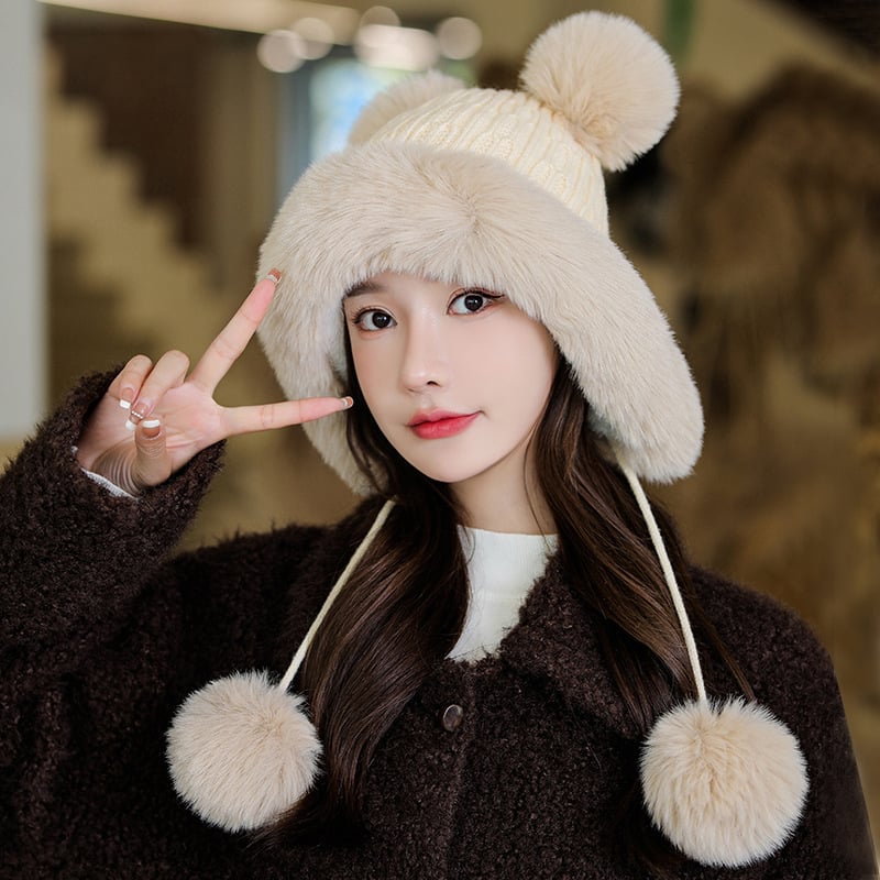 Cute Pom Pom Ears Knitted Crochet Beanies Hat Cap