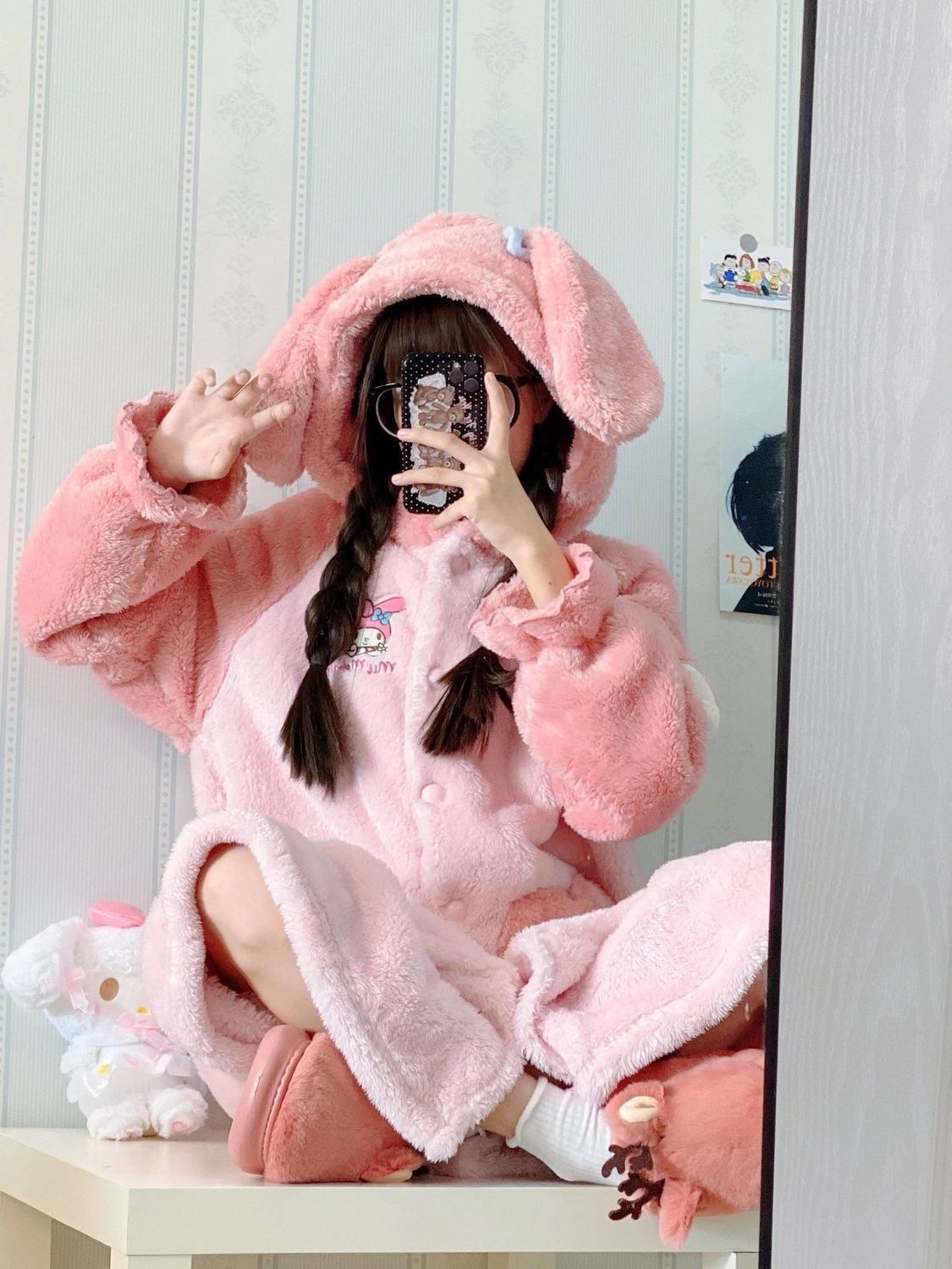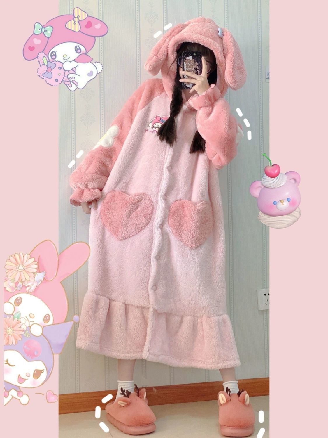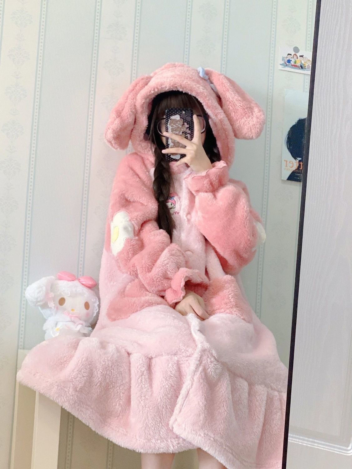 Cute Anime Cartoon Hooded Fleece Pajama Nightgown