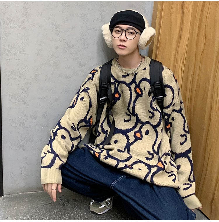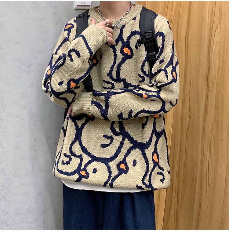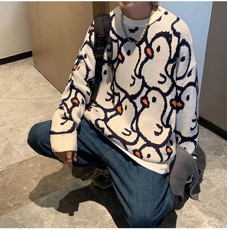 Harajuku Duck Patterns Knitted Sweater