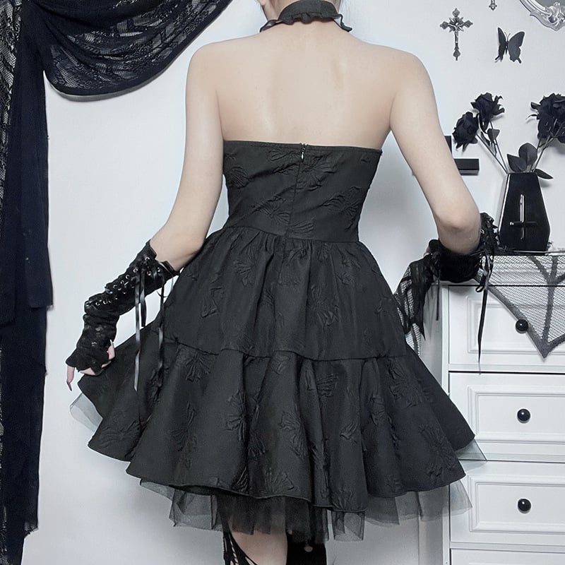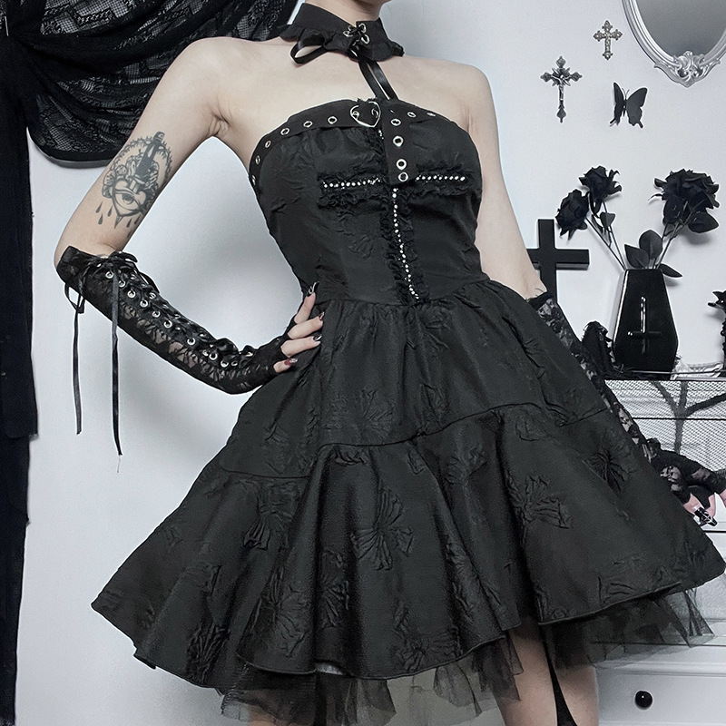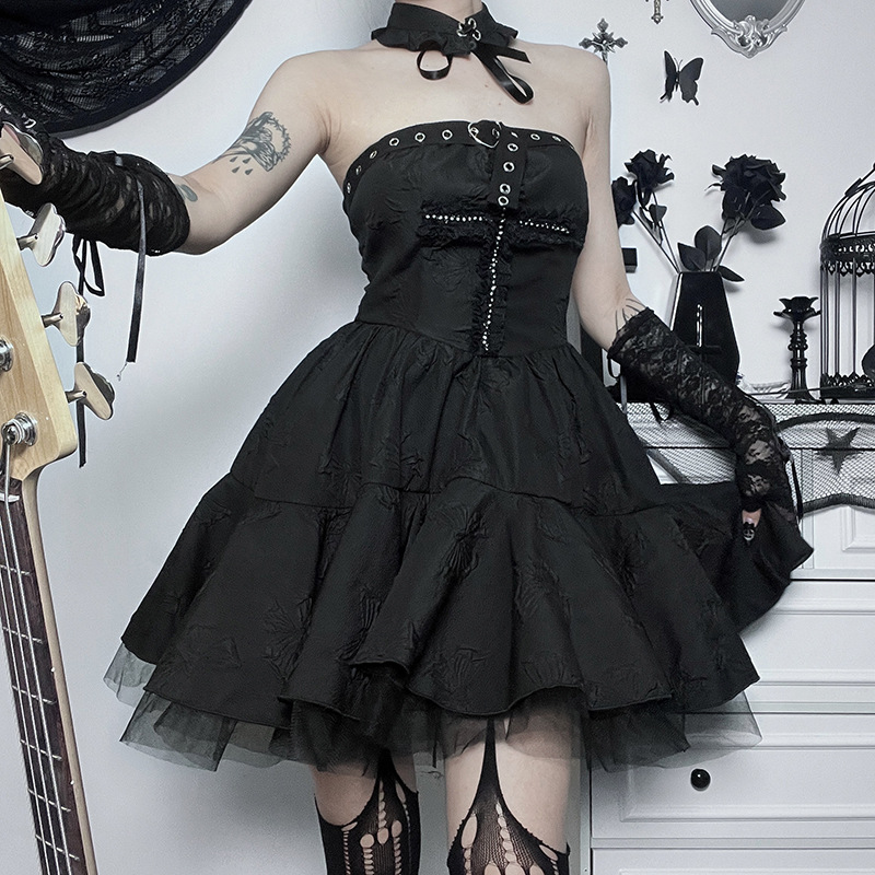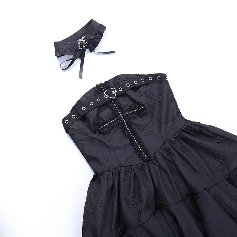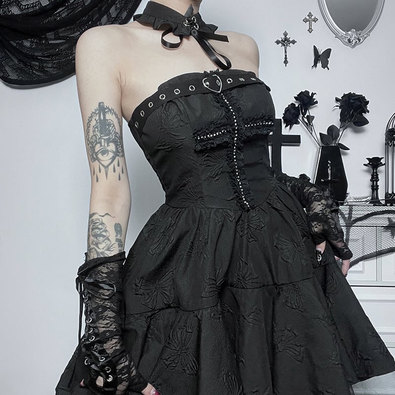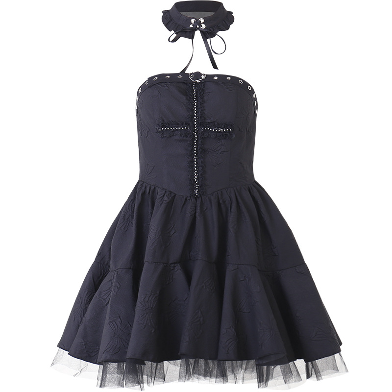 Black Gothic Punk Cross Jacquard Sexy Dress