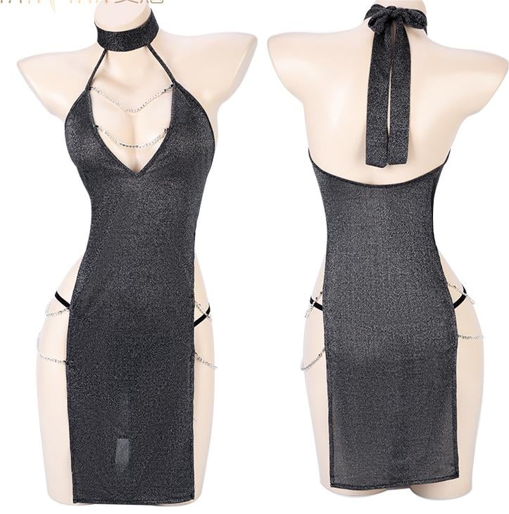 Sexy V-neck Backless Halter Dress