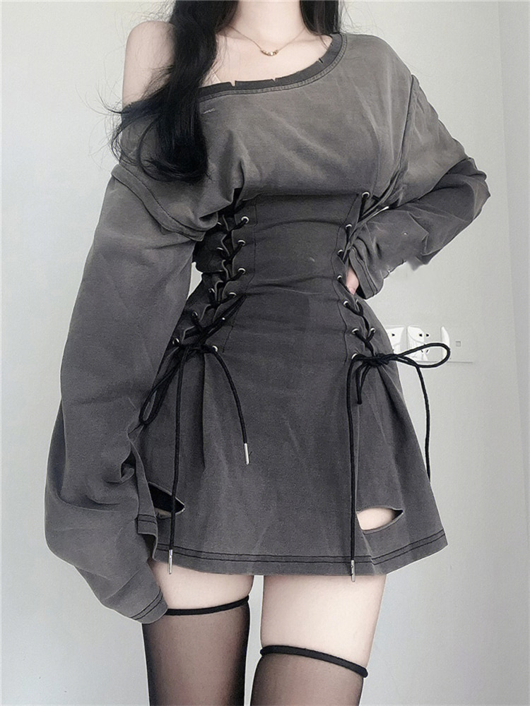 Dark Grey Grunge Goth Corset Dress