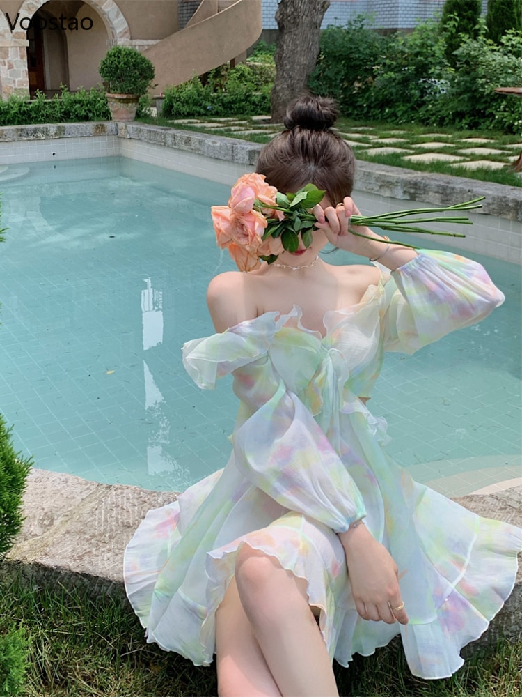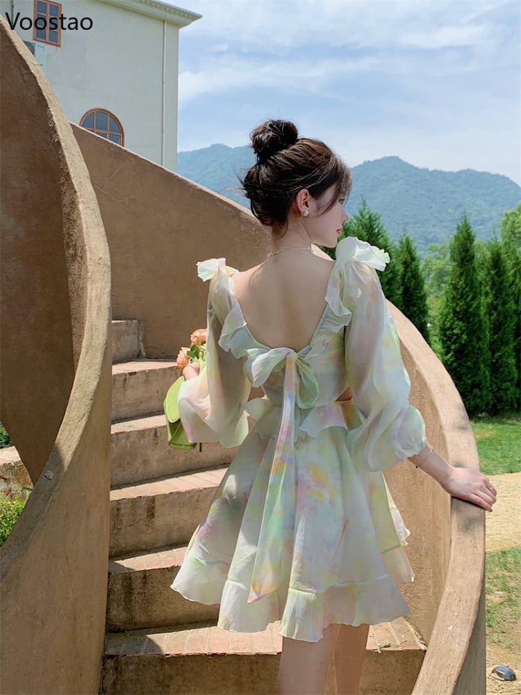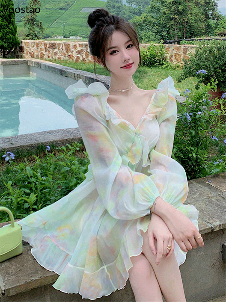 Chic Ruffles V-Neck Long Sleeve Princess Dress
