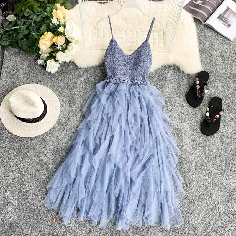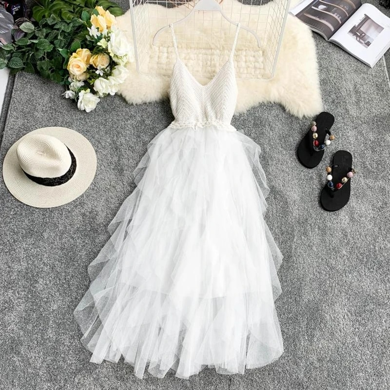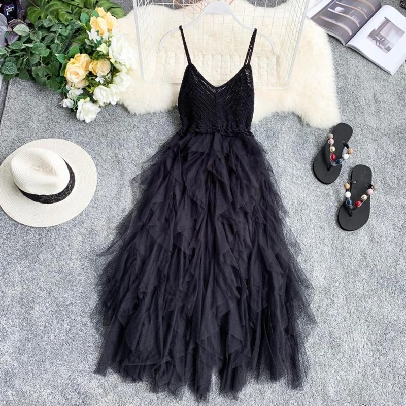 Get ready to turn heads and make a statement with our Summer Sleeveless Sling Gauze Tulle Dress. This exquisite dress is a perfect combination of sophistication and allure, designed to make you feel confident and glamorous.