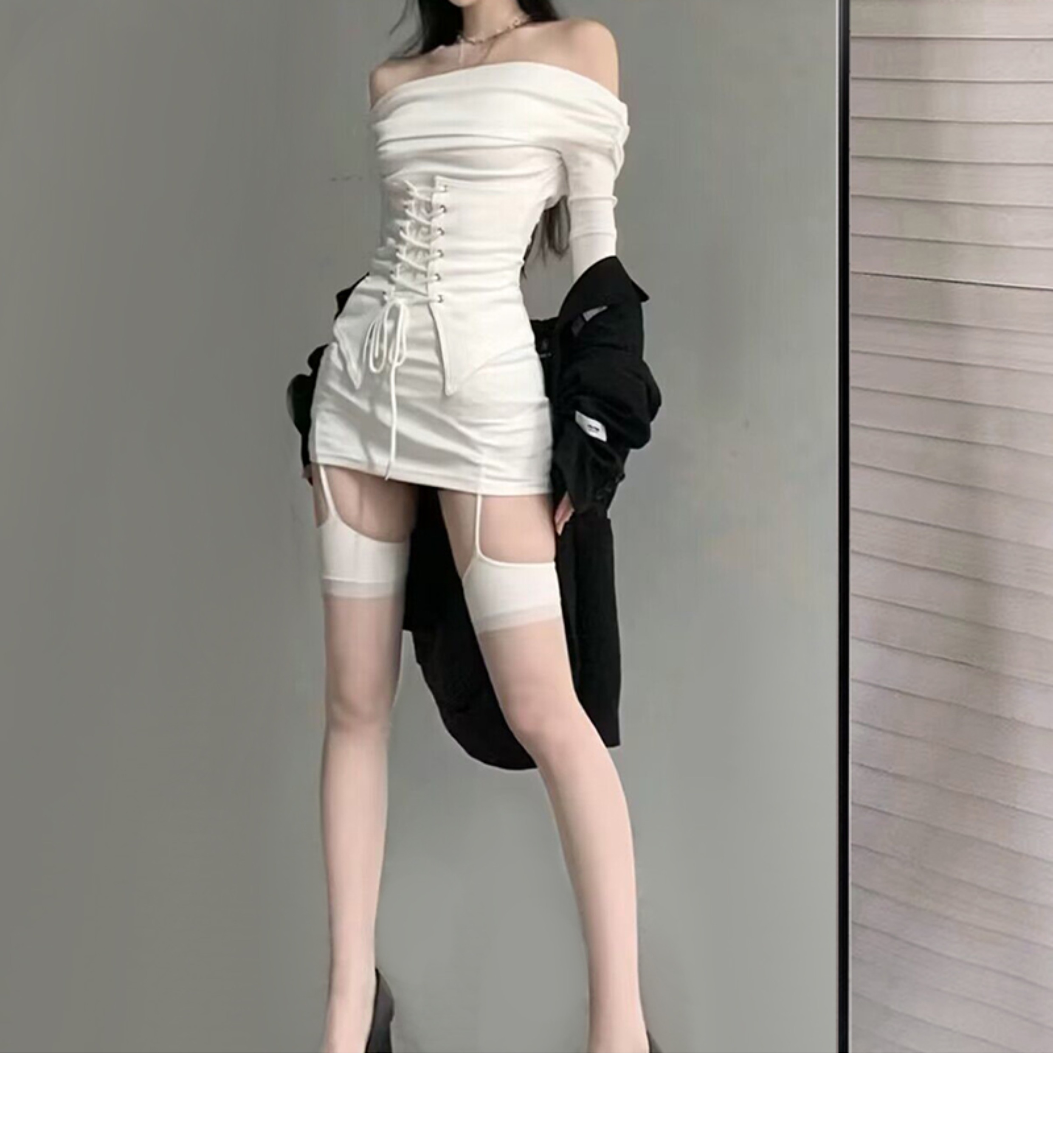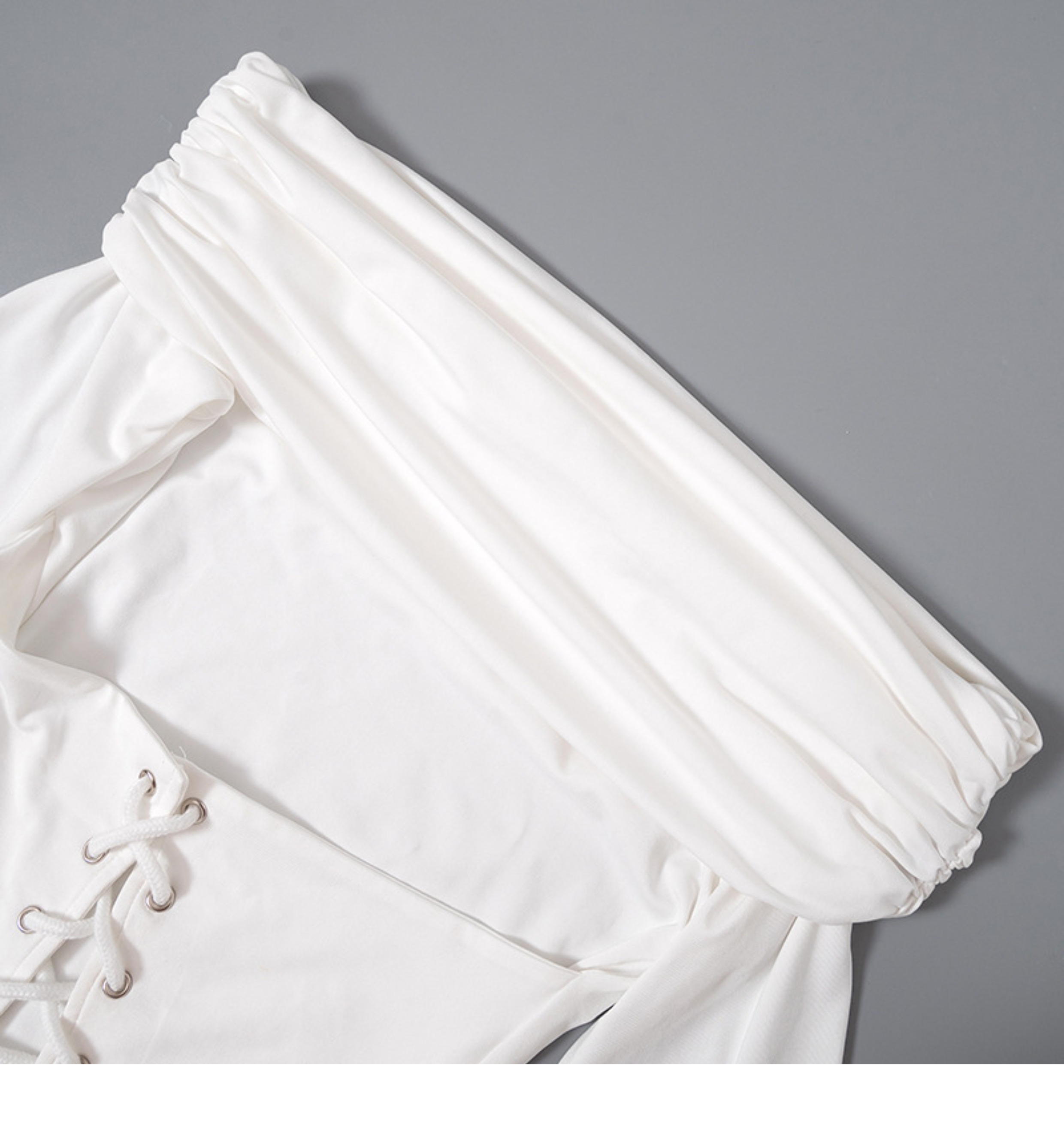 Dress to impress in our Lace-Up Off-Shoulder White Dress – a stunning ensemble that combines elegance with a touch of allure. Featuring a flattering off-shoulder design, long sleeves, and a waist-cinching detail, this dress is perfect for making a statement at any occasion. The lace-up detailing adds a hint of playfulness to the timeless white hue. Embrace sophistication and style with our Lace-Up Off-Shoulder White Dress – where grace meets a hint of glamour.