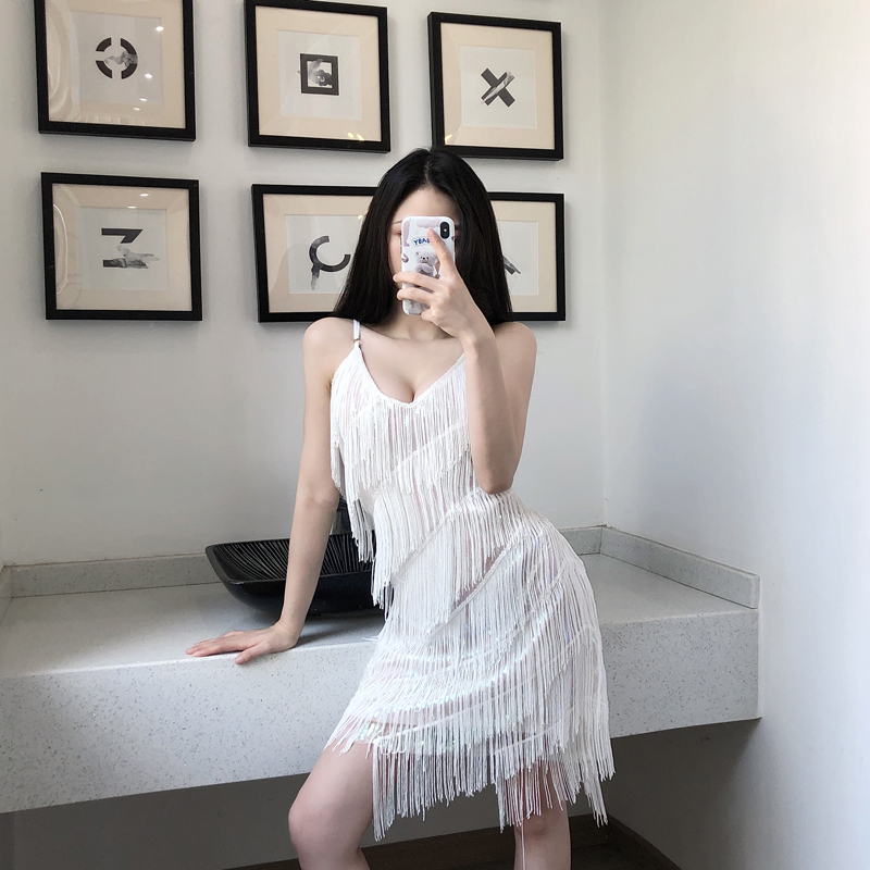 Sexy V-neck Tassel Splicing Sequin Party Dress