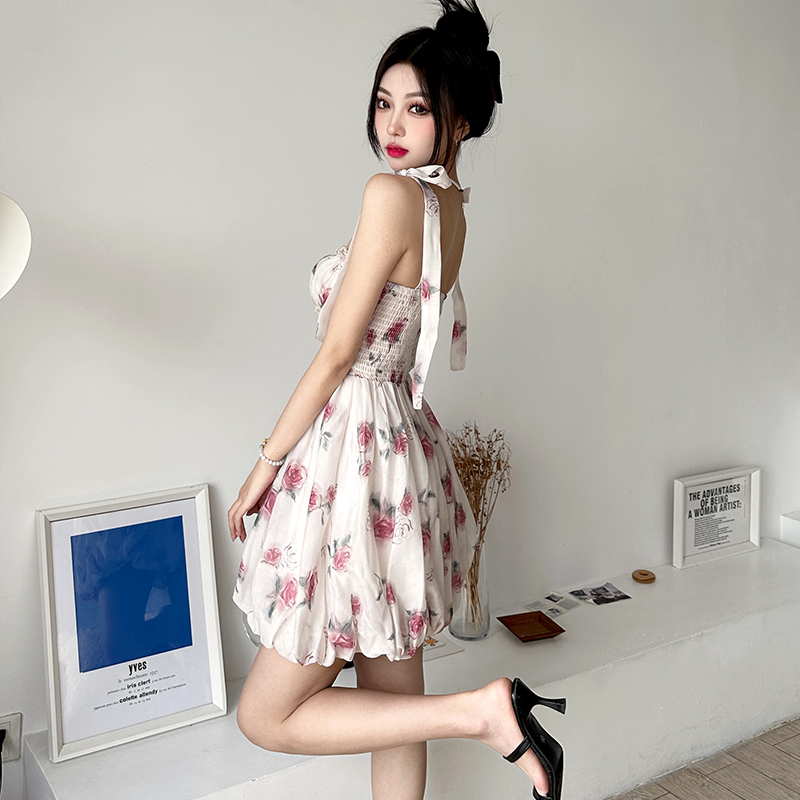 French floral strap dress with sash design
