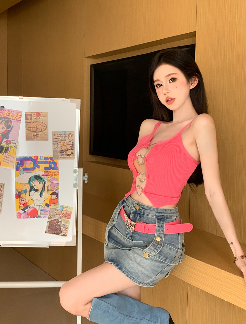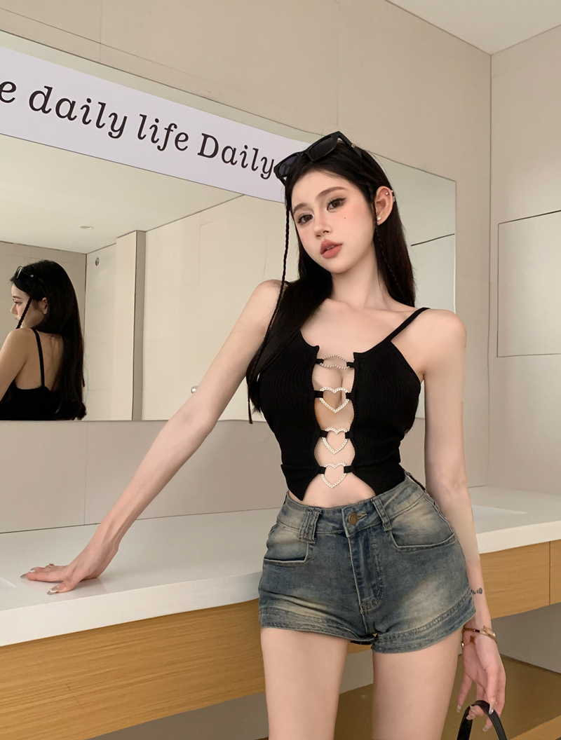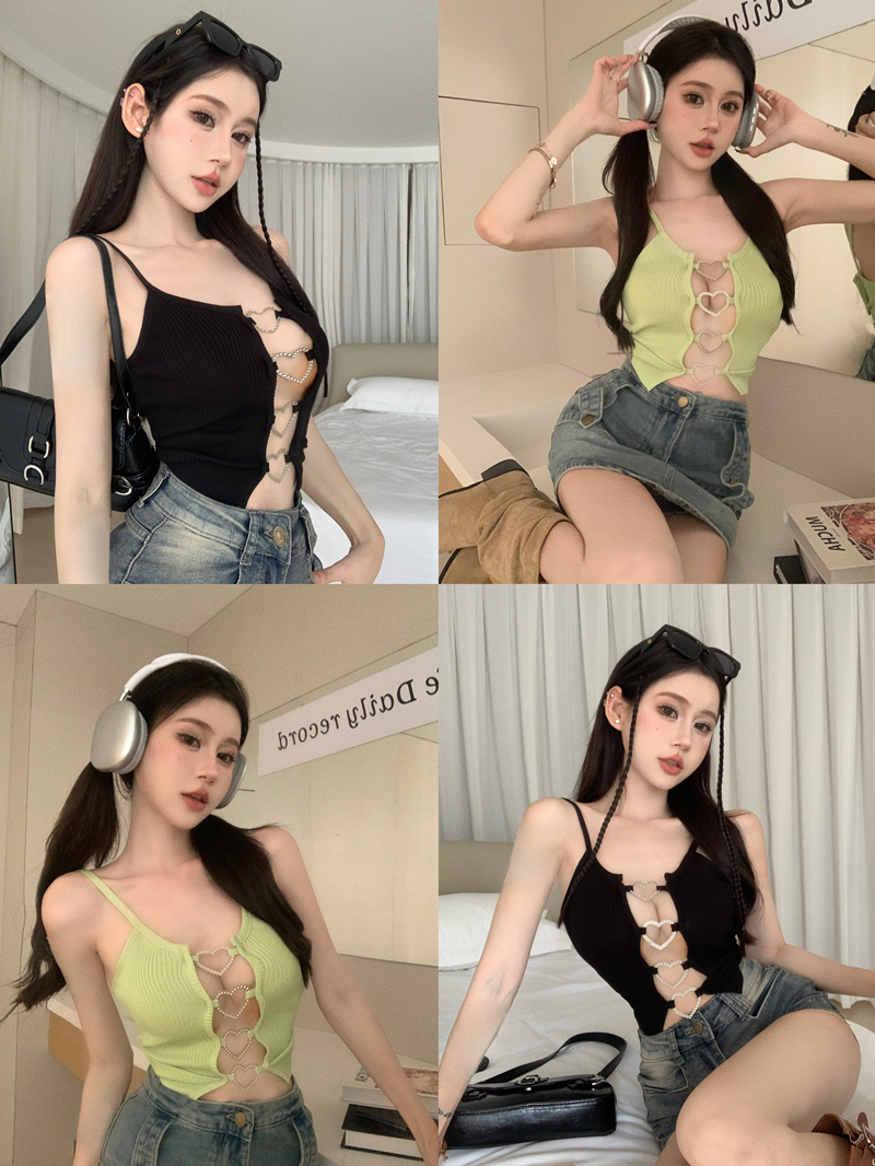 Hallow Out Heart-Accent Crop Top Slimming Top