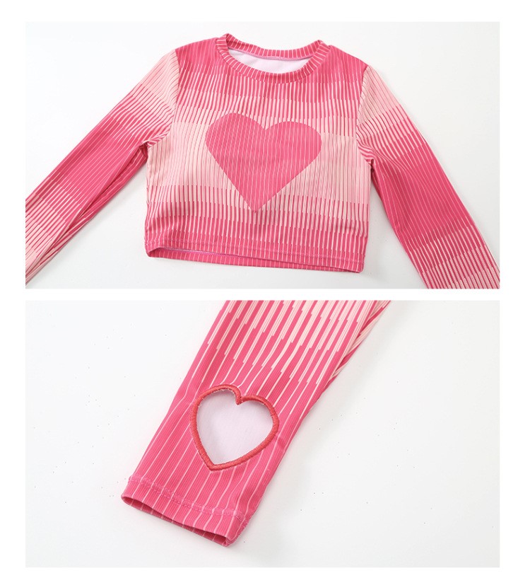 2pcs Pink Heart Long Sleeve Swimwear Set