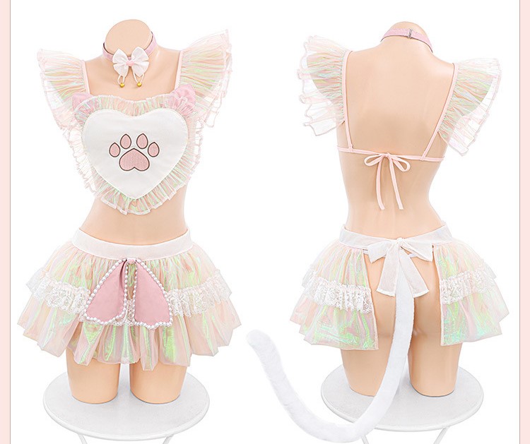 Kawaii Cat Paw Heart Lingerie Set - 7pcs