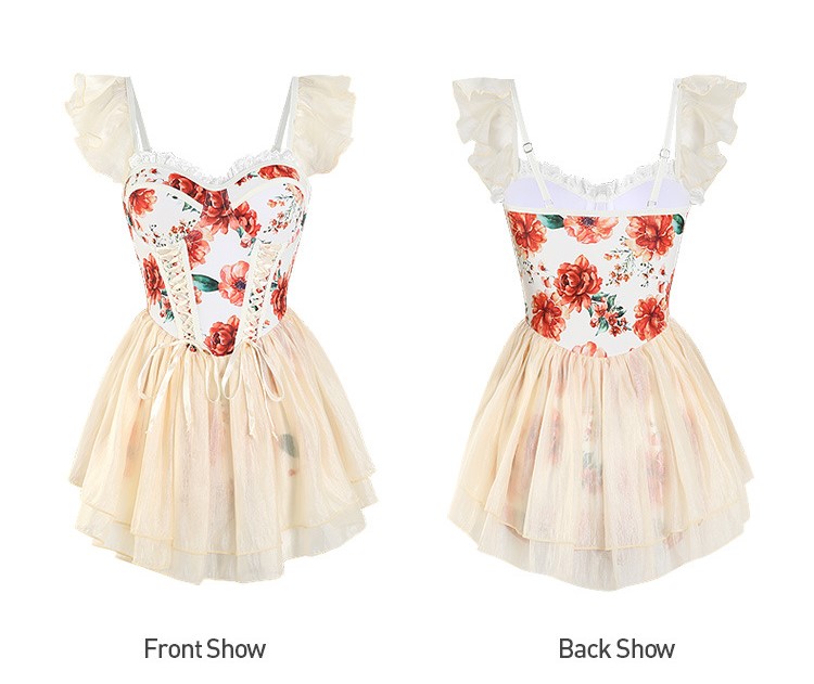 Channel your inner water sprite with this vintage floral print swim dress! Featuring a whimsical fairy tale design, this one-piece flatters with a mes flowing skirt, cinched waist. Perfect for poolside lounging or making a splash, it's a swimsuit that's as unique as you are.