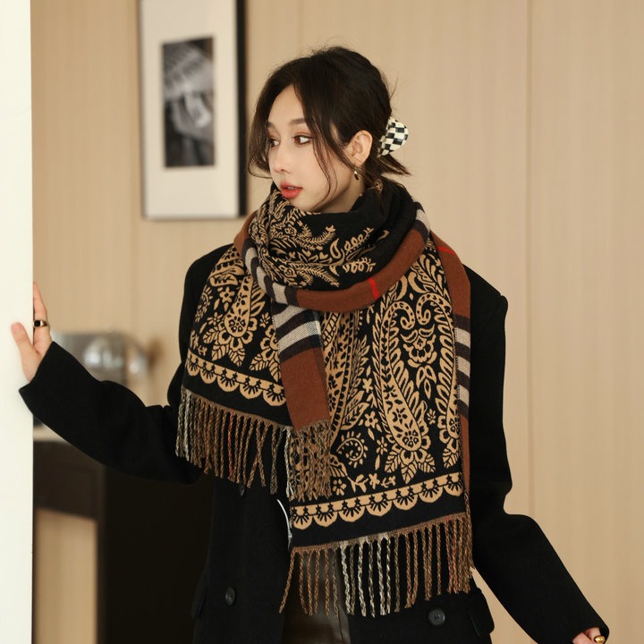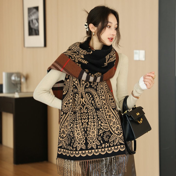 Elevate your winter wardrobe with our Maillard Retro Plaid Double-sided Cashew Imitation Cashmere Scarf. Crafted from soft, luxurious imitation cashmere, this scarf offers exceptional warmth and comfort. The classic plaid pattern adds a timeless touch, while the double-sided design allows you to switch up your style effortlessly. Perfect for layering over coats, sweaters, or even dresses, this versatile accessory is a must-have for any fashion-conscious individual.